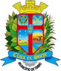 Tendo sido desmembrado de Blumenau, o Brasão D’Armas do Município de Timbó será baseado nas armas daquele. Assim, é que daquela peça heráldica se extrai o motivo do escudete inferior de senestra, isto é um campo de flores à margem do Rio Itajaí, alusão ao nome de Blumenau que quer dizer “Campo de Flores” e sobre o qual brilha o Cruzeiro do Sul.