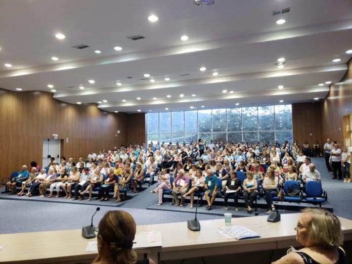O plenário da Câmara Municipal de Vereadores recebeu na tarde de hoje, dia 20, a 1° Conferência Municipal do Idoso. O evento foi promovido pela Prefeitura de Timbó, por meio da Secretaria de Saúde e Assistência Social e do Conselho Municipal do Idoso, com o tema “Os desafios de envelhecer no século XXI e o papel das Políticas Públicas”, e contou com a participação de aproximadamente 180 pessoas.