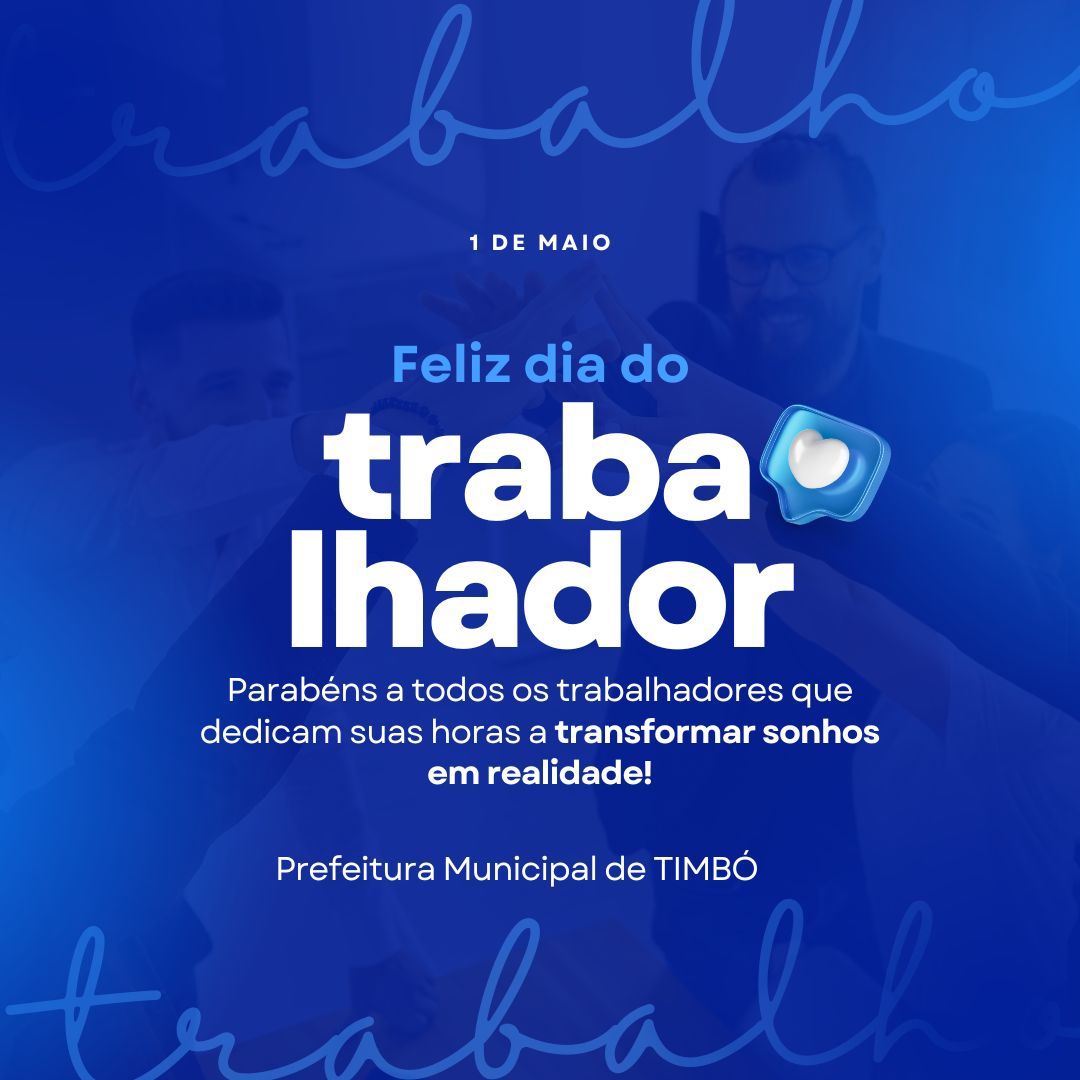 Neste 1º de Maio, a Prefeitura de Timbó presta uma homenagem especial a todos os trabalhadores e trabalhadoras que, com dedicação, esforço e compromisso, constroem diariamente o presente e o futuro do nosso município.