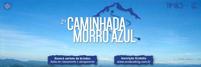 No dia 27 de agosto, domingo, a Prefeitura de Timbó irá, através do Departamento de Turismo, irá realizar a 2ª edição da Caminhada Morro Azul. O evento terá um percursos de 14 Km com concentração a partir das 8h30min na Associação dos Moradores do Bairro São Roque. A saída será a partir das 9h.