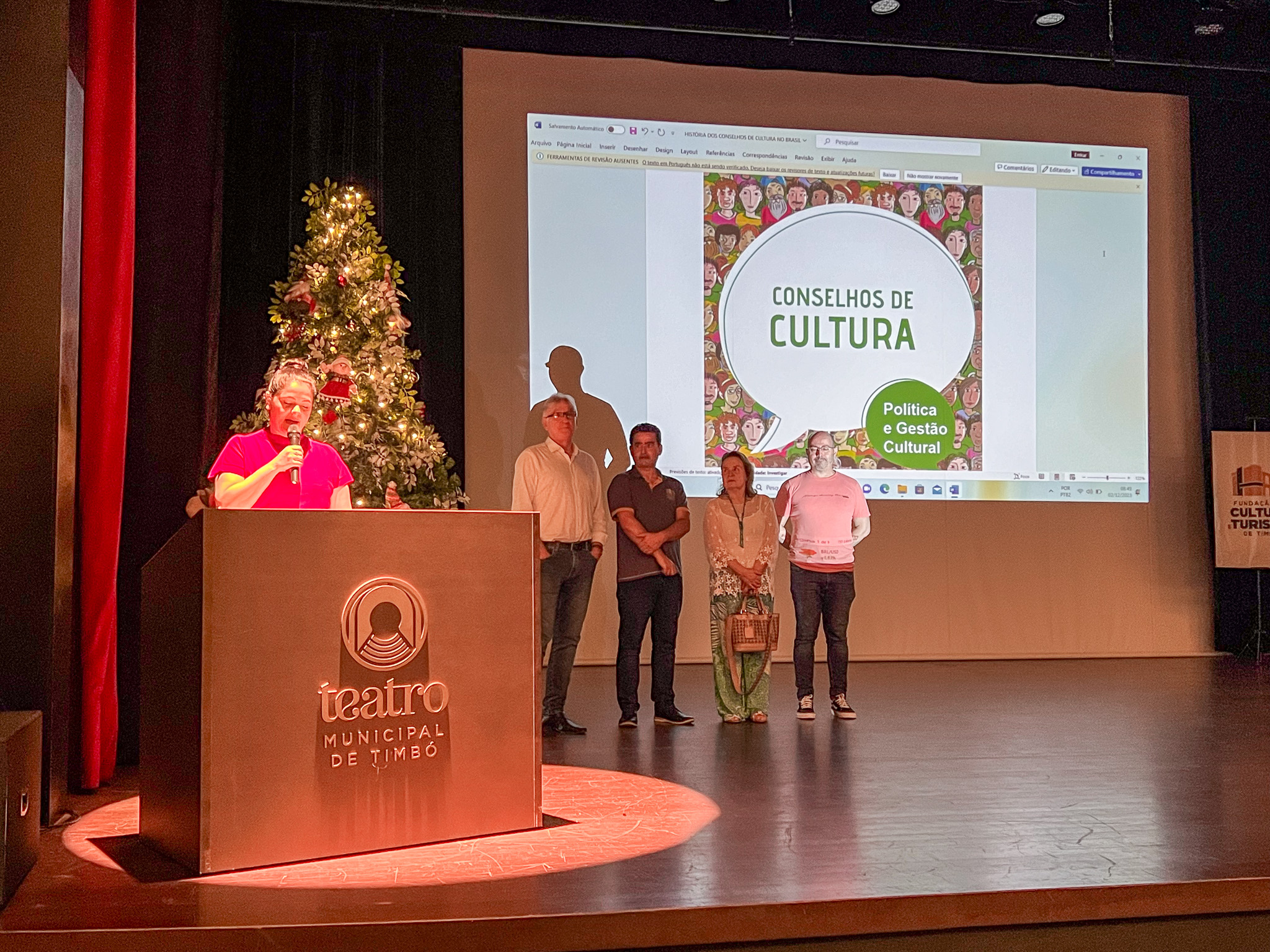 Na manhã do último sábado, dia 02 de dezembro, aconteceu a 2ª Conferência Municipal de Cultura de Timbó, no Teatro Municipal. Participaram artistas, fazedores de cultura, sociedade civil representada por vários segmentos e representantes do poder público.