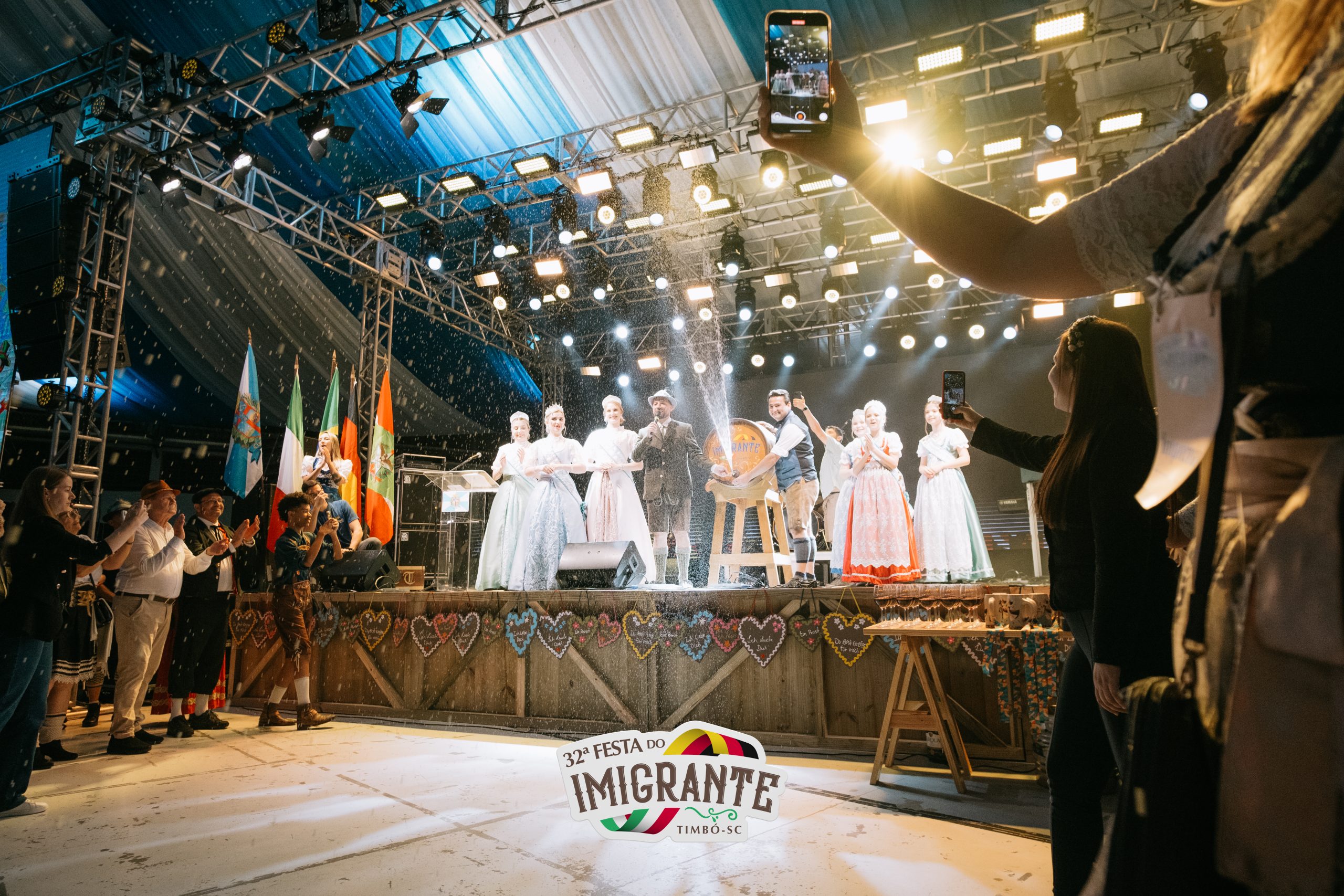 Nesta quinta-feira, dia 10 de outubro, iniciou a 32ª Festa do Imigrante de Timbó. Devido à chuva, o tradicional desfile de abertura, que seria entre o Museu do Imigrante e a Festa, aconteceu somente dentro do Pavilhão de Eventos. No Pavilhão de Eventos, a cerimônia de abertura foi embalada pela Banda Municipal Professor João Muller. Estiveram presentes diversas autoridades do município, inclusive com a presença especial de prefeitos da Associação de Municípios do Vale Europeu (AMVE).
