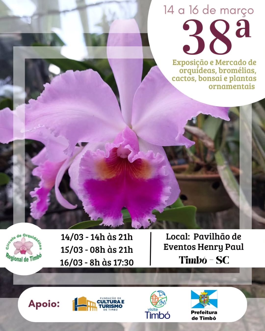 Nos dias 14, 15 e 16 de março, o Pavilhão de Eventos Henry Paul se transformará em um verdadeiro paraíso botânico durante a 38ª Exposição e Mercado de Orquídeas, Bromélias, Cactos, Bonsai e Plantas Ornamentais. O evento, promovido pelo Círculo de Orquidófilos Regional de Timbó-SC (CORT) com o apoio da Prefeitura, através da Fundação de Cultura e Turismo, promete encantar visitantes de todas as idades.