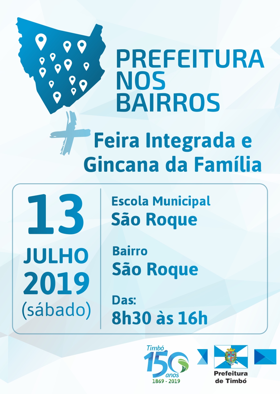 Dia 13 de julho, sábado, acontece a 3º edição do Programa Prefeitura nos Bairros. Desta vez a localidade contemplada é a do Bairro São Roque. O evento acontece na Escola Municipal do bairro, das 8h30min às 16h. Paralelamente ao Prefeitura nos Bairros acontece a Feira Integrada e a Gincana da Família da Escola Municipal São Roque.