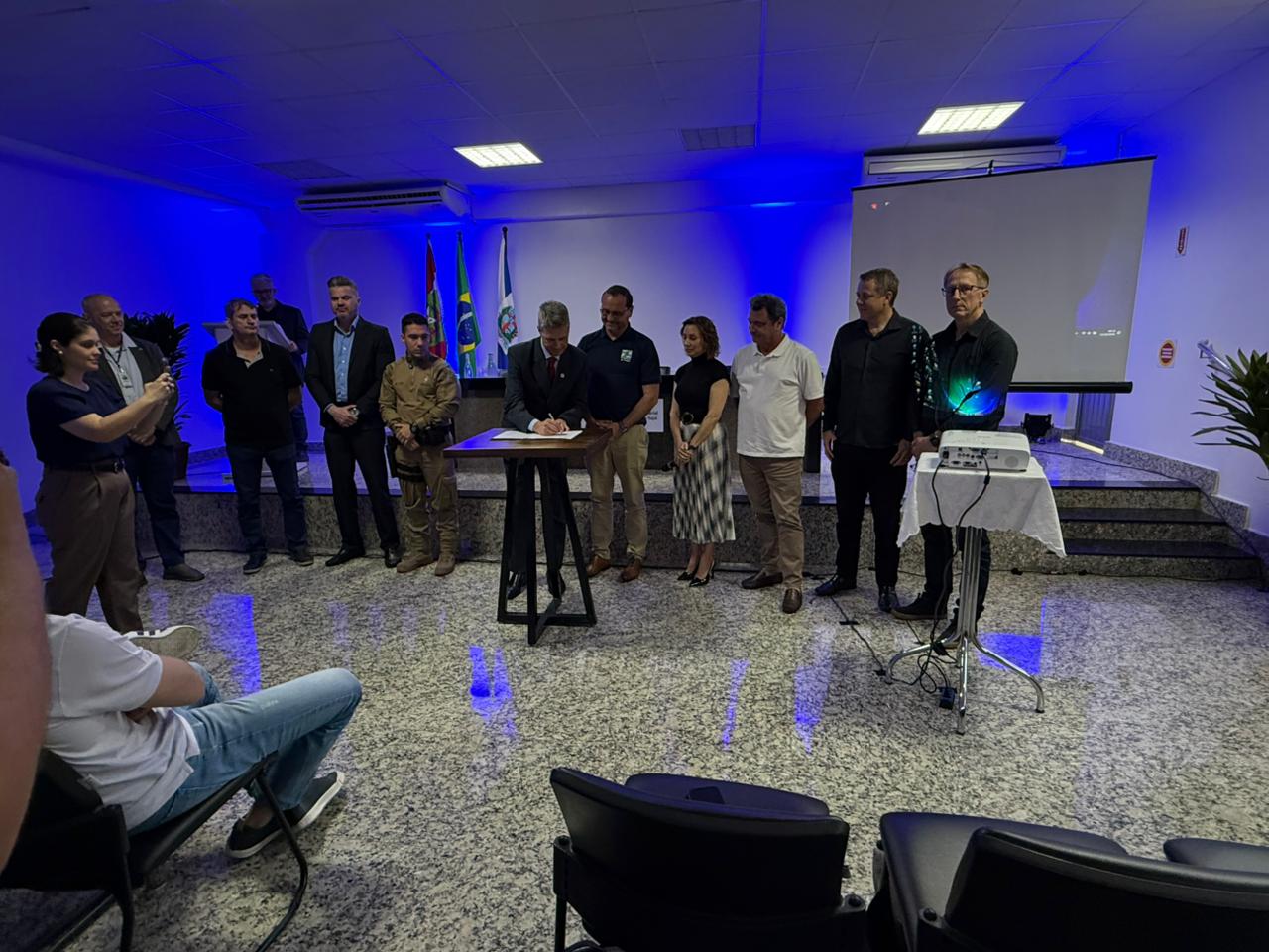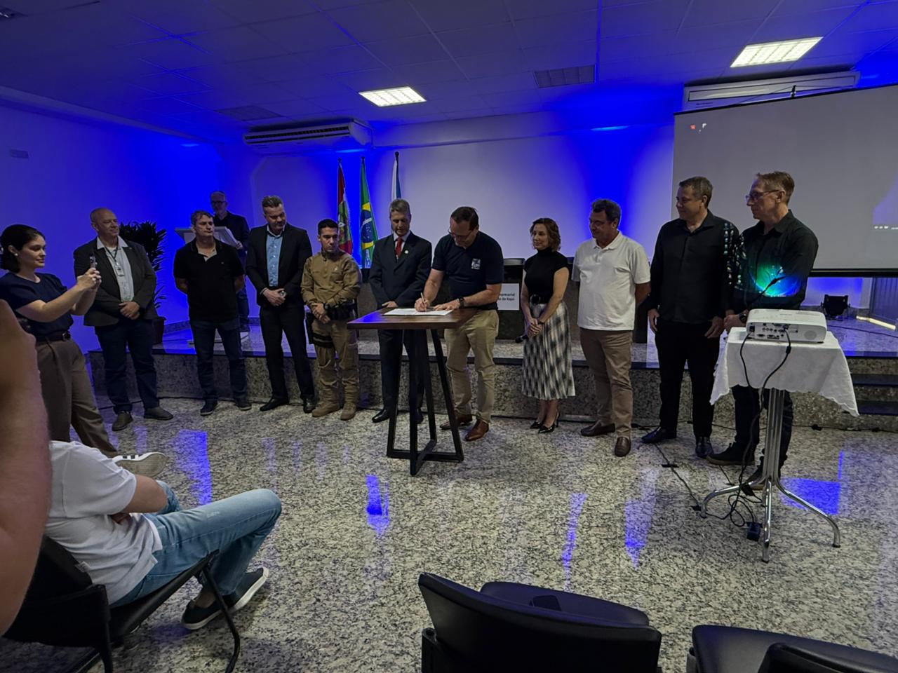 O ato de assinatura ocorreu durante o Café da Manhã do Empresário, promovido pela Associação Empresarial do Médio Vale do Itajaí (Acimvi). Na ocasião, o secretário estadual de Segurança Pública, Coronel Flávio Graff, apresentou dados e indicadores do setor em Santa Catarina, destacando que o estado figura entre os mais seguros do país.