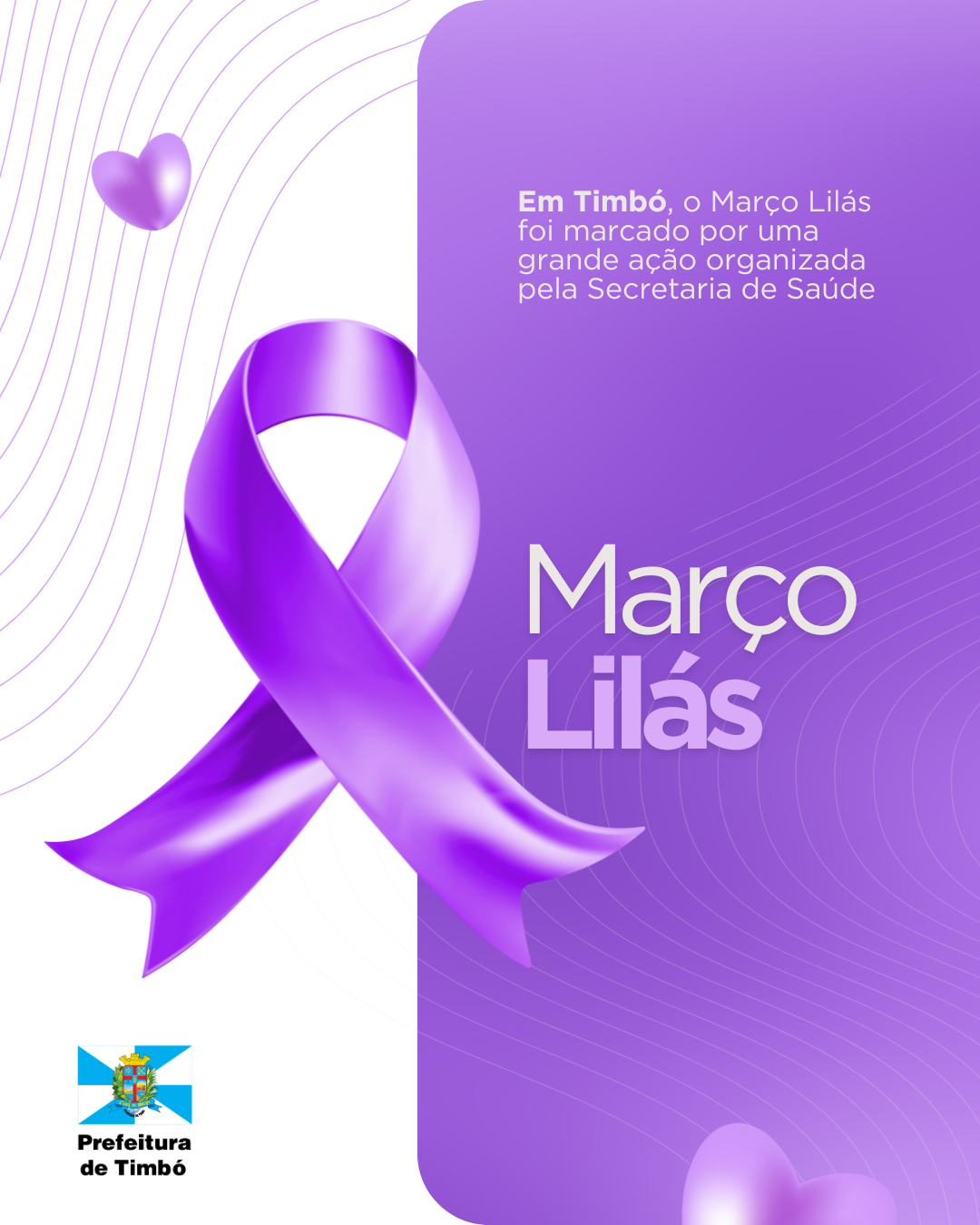 Dentro da programação do Março Lilás, mês dedicado à conscientização e prevenção do câncer de colo de útero, a Prefeitura de Timbó, através da Secretaria Municipal de Saúde, promoveu uma ação especial de atenção à saúde da mulher neste Dia Internacional da Mulher, celebrado no último sábado, dia 08.