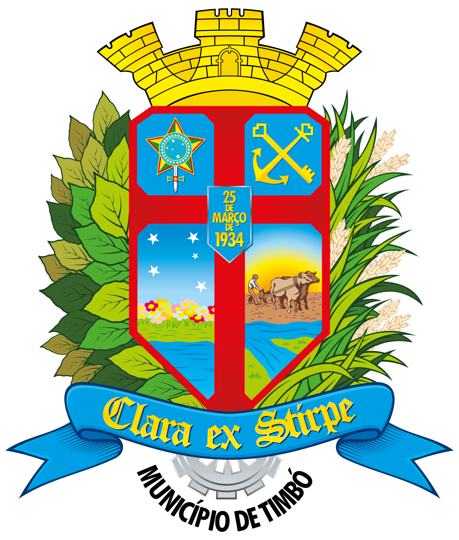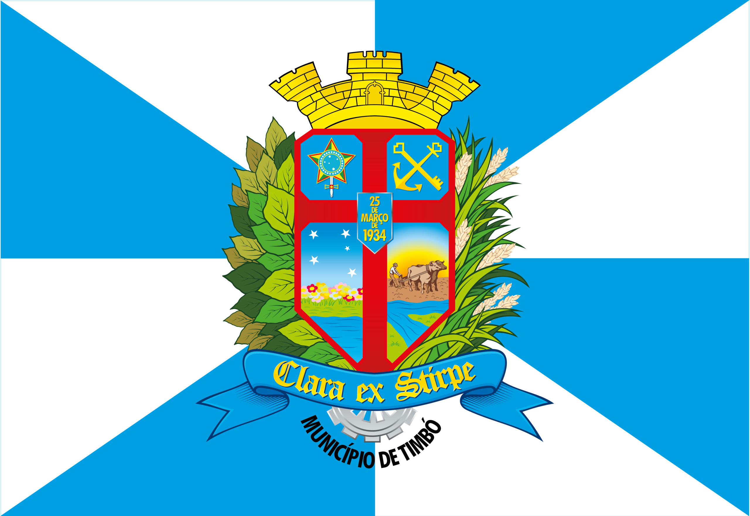 Tendo sido desmembrado de Blumenau, o Brasão D’Armas do Município de Timbó será baseado nas armas daquele. Assim, é que daquela peça heráldica se extrai o motivo do escudete inferior de senestra, isto é um campo de flores à margem do Rio Itajaí, alusão ao nome de Blumenau que quer dizer “Campo de Flores” e sobre o qual brilha o Cruzeiro do Sul.