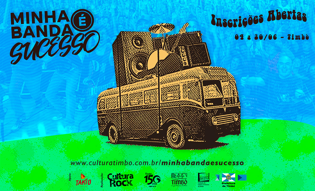 Chegou a hora das bandas de rock de Santa Catarina mostrarem seu talento, na 3ª edição do Concurso “Minha Banda é Sucesso”. As inscrições seguem até o dia 30 de junho, no site www.culturatimbo.com.br, com o custo de R$ 50. O concurso é promovido pela Prefeitura de Timbó, através da Fundação de Cultura e Turismo (FCT), e voltado exclusivamente para bandas catarinenses autorais que explorem o rock em suas mais variadas formas.