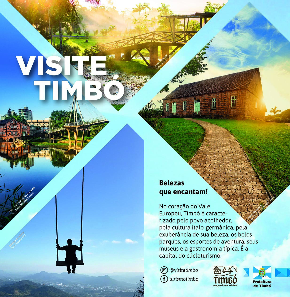 As ações projetadas pelo Departamento de Turismo de Timbó no decorrer do ano de 2019, devem se repetir com o mesmo sucesso e, ainda mais, para o próximo ano. Cada vez mais as atrações propostas pela Administração Pública para receber o visitante, e também envolver o nosso munícipe, têm sido ampliadas e qualificadas.