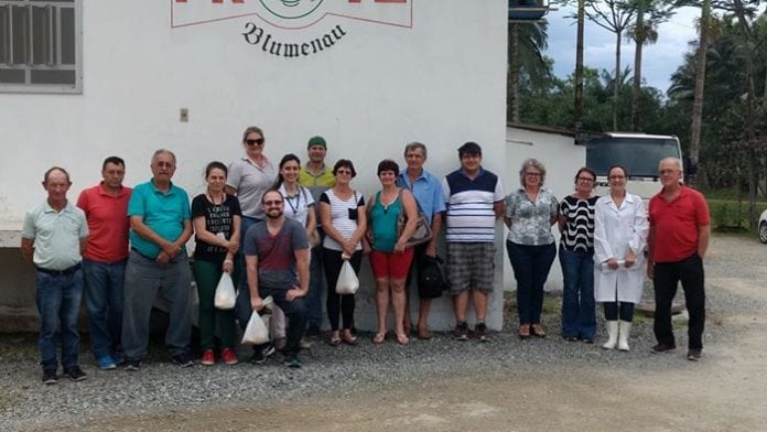 Ontem, quinta-feira (19) agricultores e técnicos da Prefeitura de Timbó e Epagri visitaram a Cooperativa Prove de Blumenau (COOPERPROVE). A visita teve como objetivo conhecer a estrutura física para a fabricação de queijo maturado e queijinho branco, bem como os equipamentos utilizados e o aperfeiçoamento das técnicas para a fabricação destes produtos.