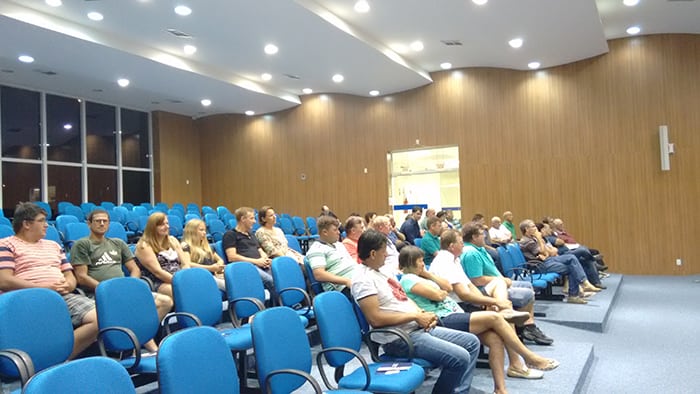 O Prefeito Jorge Kruger participou na noite de ontem (09), na Câmara de Vereadores, da primeira reunião ordinária do Conselho Municipal de Desenvolvimento Rural – CMDR. Cerca de 40 agricultores estiveram presentes. Também participaram da reunião o secretário de Obras Darcízio Bona, o subsecretário Atomir Sebastião Rufinos e o diretor de Agricultura Mário Vieira, além de outros servidores da pasta e do presidente da CMDR, Bruno Gumz. Na pauta a apresentação dos novos membros do conselho e da administração municipal, além de alguns encaminhamentos com relação à patrulha mecanizada. O prefeito aproveitou a ocasião e falou para os agricultores. Ele disse que o associativismo no campo deve ser fomentado, no sentido de capacitarmos o pequeno produtor da agricultura familiar, frisou.