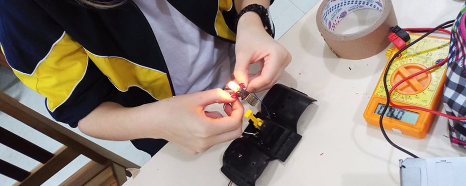 No desenvolvimento do projeto Clube de Tecnologia, os alunos são instigados a desmontar, analisar e criar novos mecanismos, utilizando para isso diversas ferramentas: chaves, alicate, ferro de solda, multímetro, pistola de cola quente, tesoura, estilete, serrote, micro retífica com brocas, lixas, entre outros.