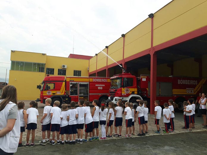 Na última sexta-feira, dia 04, alunos do 2º ano da Escola Municipal São Roque estiveram visitando o Corpo de Bombeiros de Timbó. Eles foram acompanhados pela professora Tatiana Klug, que procurou com essa visita mostrar na prática, através de exemplos com os próprios bombeiros, sobre os cuidados e a segurança que devemos ter em dias de trovoada.