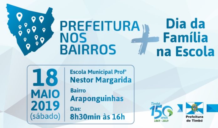 Neste sábado, dia 18, o Bairro Araponguinhas receberá a primeira edição do Programa Prefeitura nos Bairros. O Prefeitura nos Bairro será realizado na Escola Municipal Profº Nestor Margarida, das 08h30 às 16h, com mutirão de atendimentos da Prefeitura nas mais diversas áreas, atividades culturais, esportivas e de lazer, e entrada gratuita.