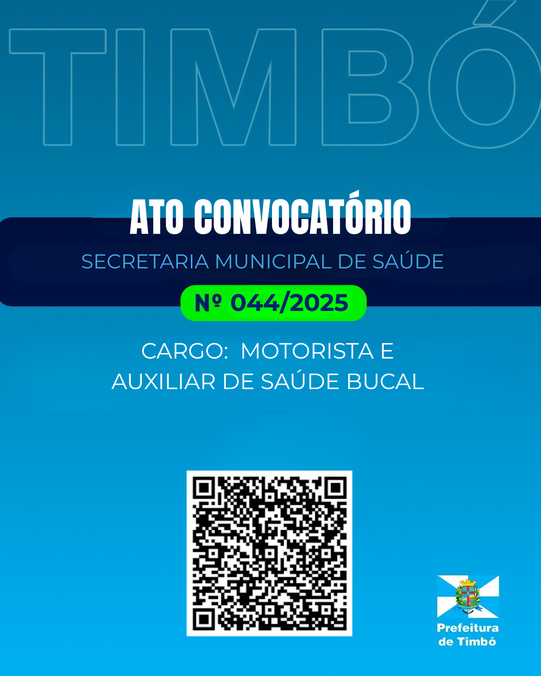 A Secretaria Municipal de Saúde de Timbó anuncia a convocação de candidatos para o preenchimento de vagas temporárias, conforme estabelecido no Ato Convocatório nº 044/2025, vinculado aos Editais de Chamada Pública Suplementar nº 03/2024.