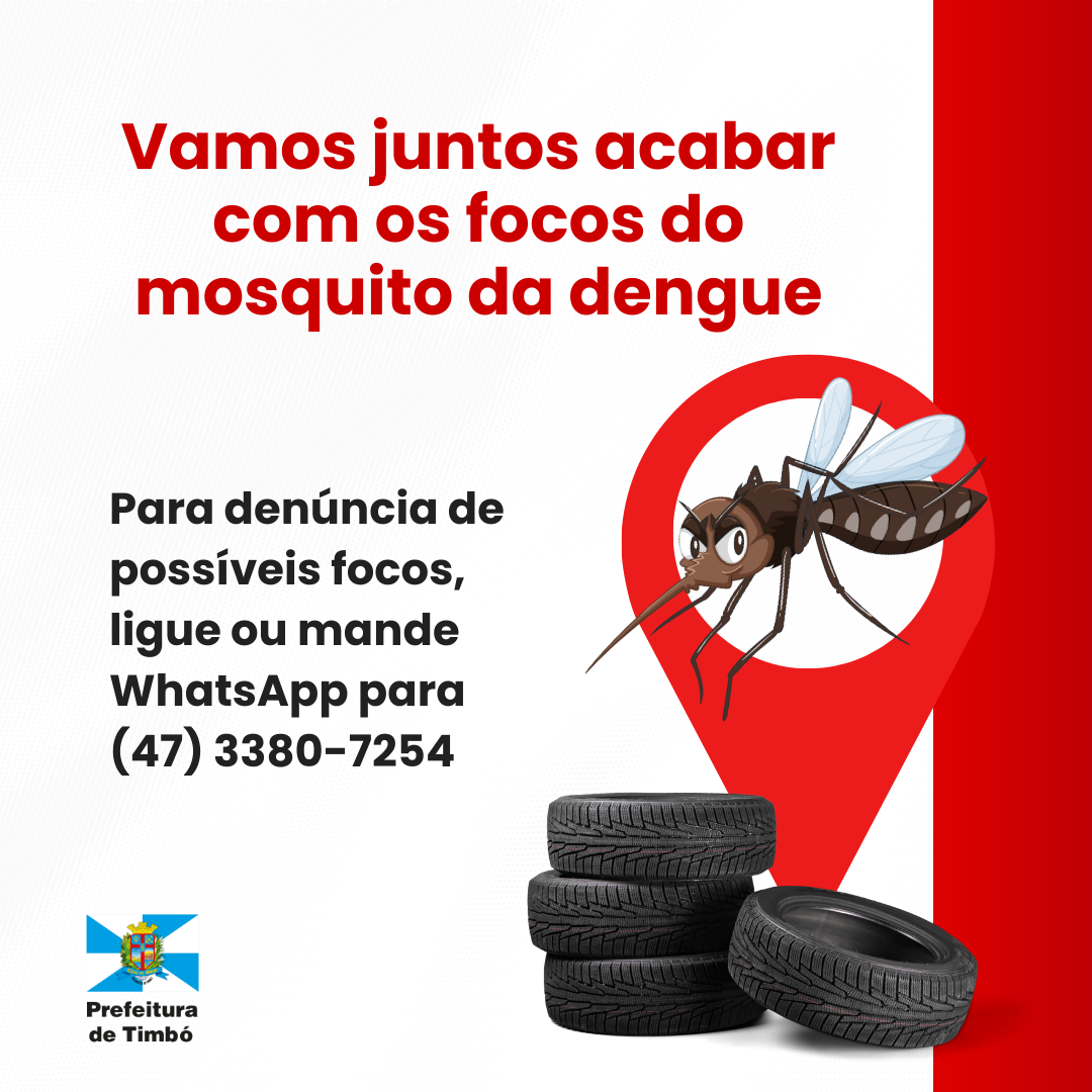 Denúncias de possíveis focos do mosquito: ligue ou envie mensagem de Whatsapp: (47) 3380-7254.