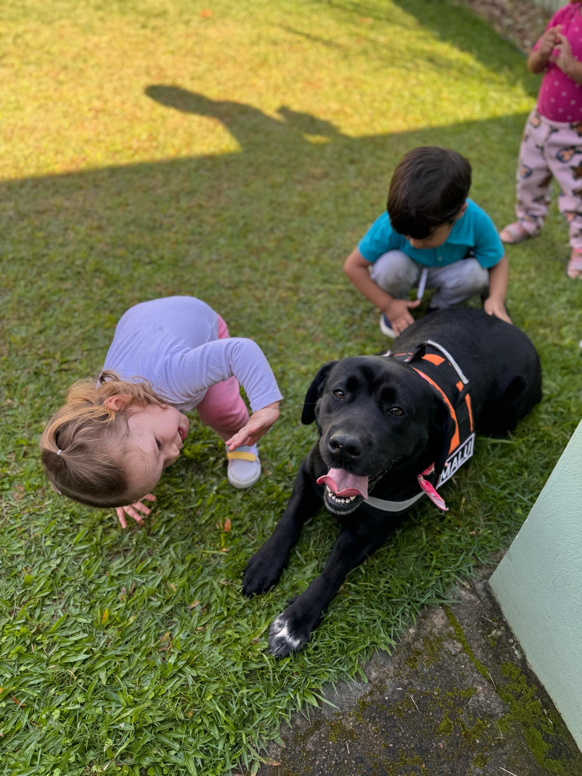 Vinda de um canil referência no estado de São Paulo, Malu tem genética favorável ao trabalho e características que a tornam ideal para interagir com crianças: é tranquila, carinhosa e não apresenta comportamento agressivo.