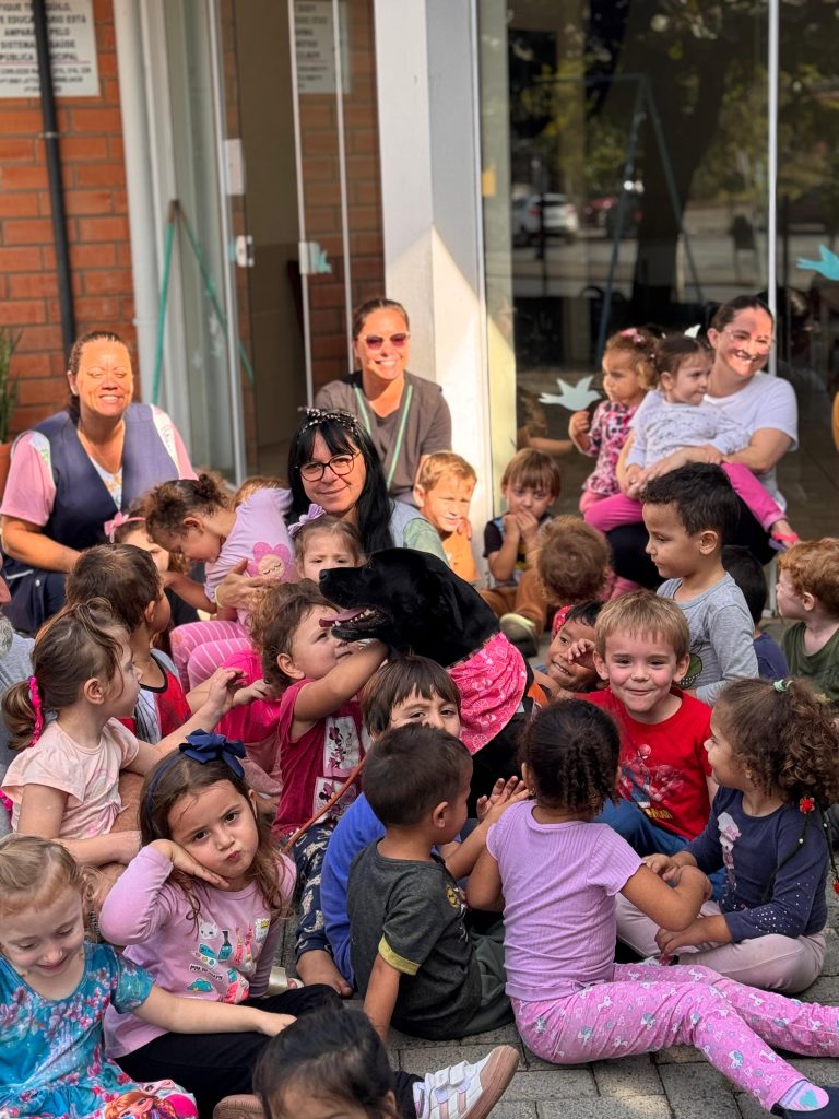 Acompanhada de seu tutor, o coordenador da Defesa Civil de Timbó, Eduardo Senem, a cachorra símbolo do órgão municipal se fez presente em dois Núcleos de Educação Infantil da cidade, nas NEIs Beija-flor e Raio de Sol.