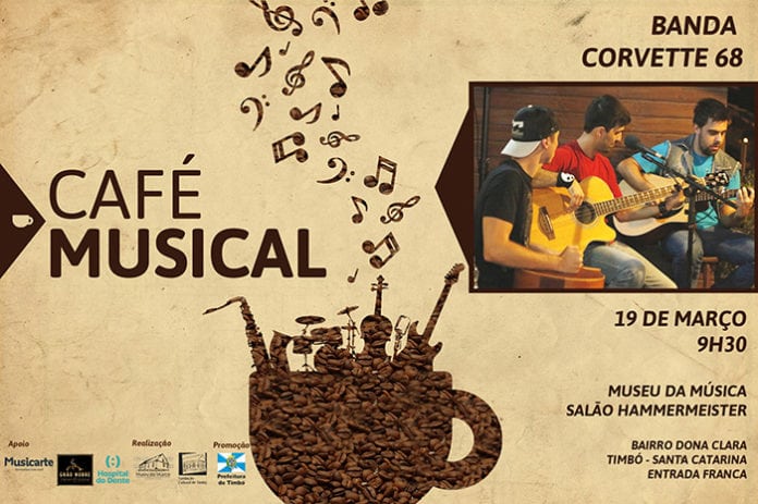 O Café Musical deste domingo, dia 19, recebe a Banda Corvette 68, de Blumenau. O evento acontece no Museu da Música, a partir das 9h30, com entrada gratuita. Além da apresentação musical, o evento conta com um delicioso café da manhã.