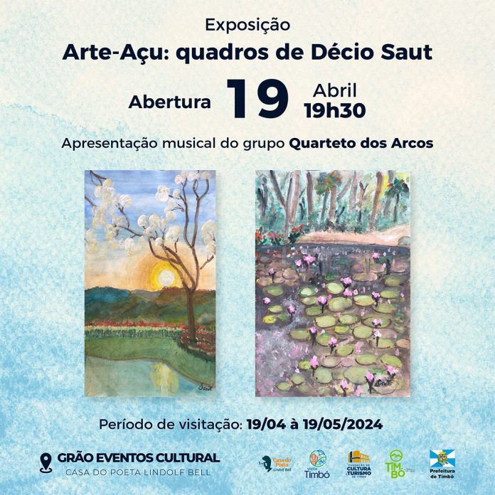 No próximo dia 19 de abril, sexta-feira, acontece a abertura da exposição temporária ‘Arte-Açu: quadros de Décio Saut’, no Museu Casa do Poeta Lindolf Bell. Com curadoria de Ruan Rosa, a mostra apresenta uma seleção de obras produzidas nos últimos anos pelo artista indaialense Décio Fernando Saut.