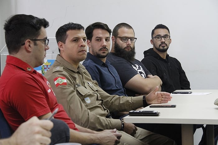 O prefeito de Timbó, Jorge Kruger, reuniu-se nesta manhã com o seu secretariado para avaliar a situação nos vários organismos públicos, em decorrência da paralisação dos caminhoneiros. É a segunda reunião em quatro dias. A seu pedido, participaram também da reunião o capitão Pablo David Henden, comandante da Polícia Militar, o1º tenente Rodrigo Vaderlinde, do Corpo de Bombeiros, Rafael Almeida Costa e Rodrigo Alessandro Ferreira, ambos agentes de Polícia Civil, além do coordenador da Defesa Civil, Fábio Melere.