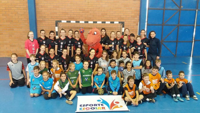 Estiveram presentes no início do evento crianças da Escola Clara Donner que desenvolve o Projeto Esporte Escolar no Mini Hand, esta foi uma oportunidade das crianças vivenciarem o futuro da modalidade.
