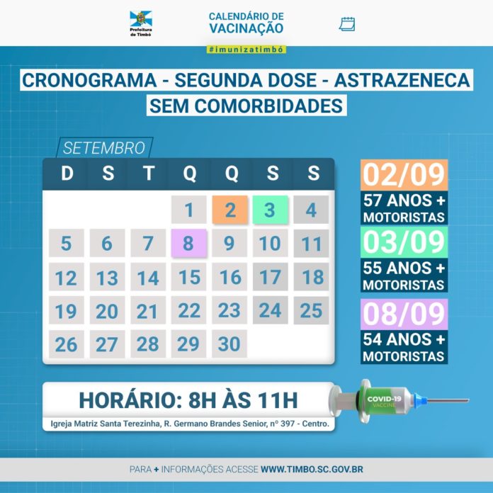 - Segunda dose da Astrazeneca para quem recebeu a primeira dose há três meses: Pessoas a partir dos 55 anos sem comorbidades; motoristas