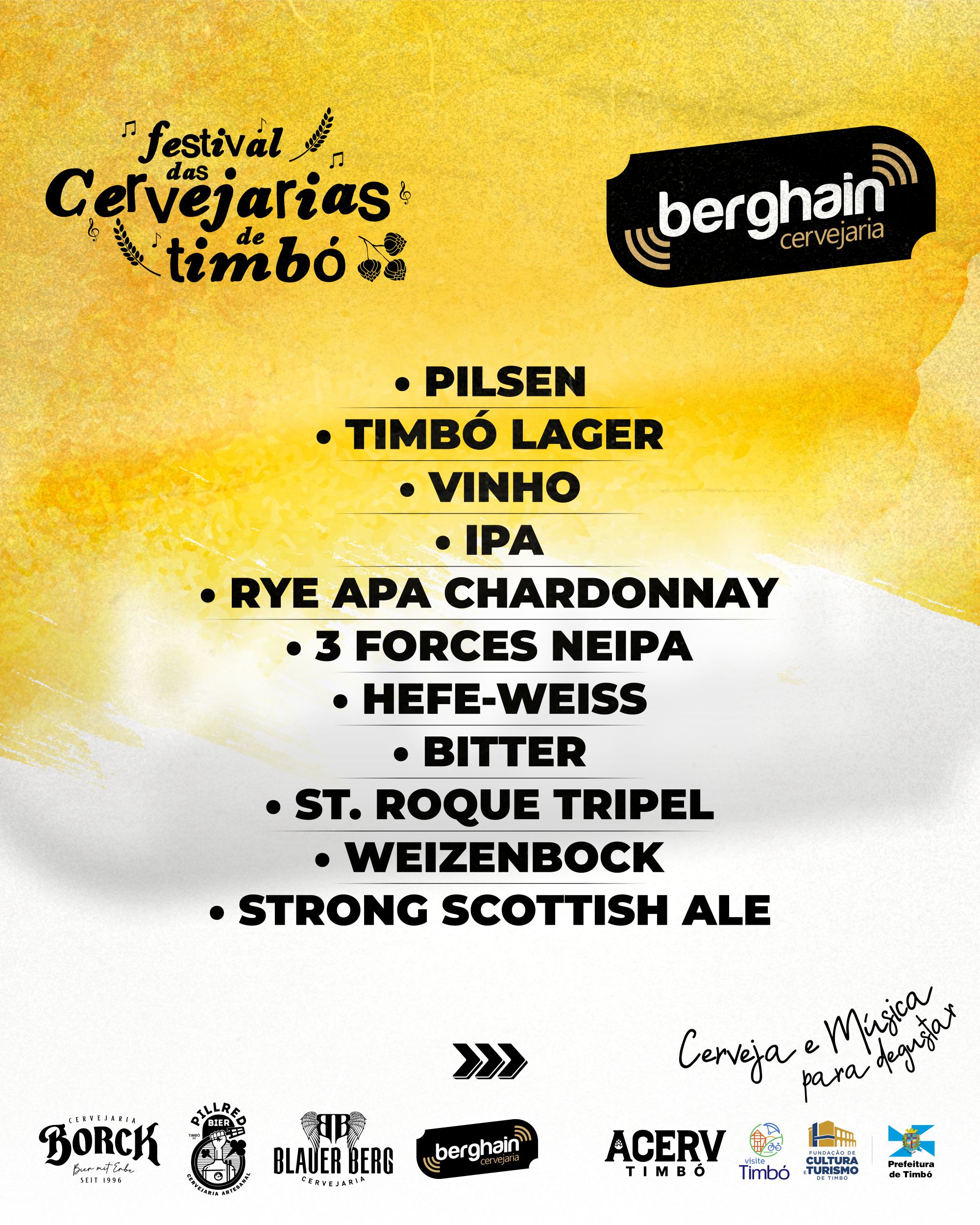 O Festival das Cervejarias de Timbó é uma realização da Associação das Cervejarias de Timbó (ACERV), Fundação de Cultura e Turismo e Prefeitura de Timbó.