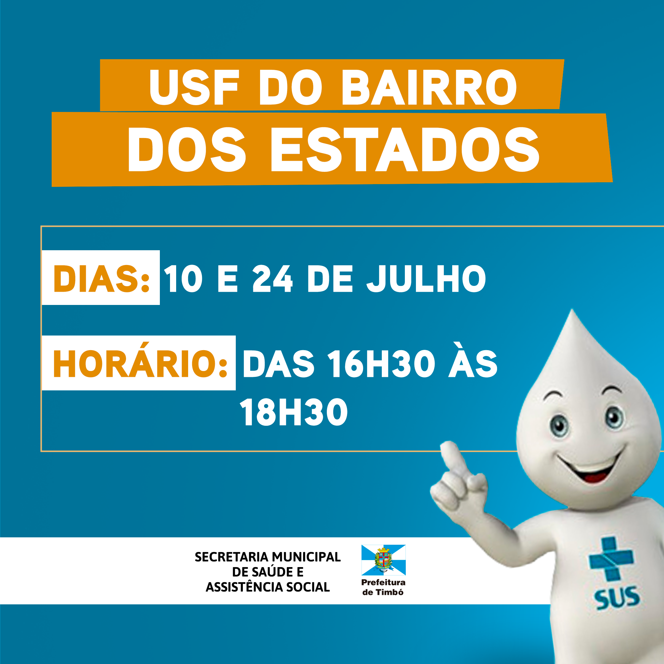 - 10 de julho, das 16h30 às 18h30 – USF Bairro dos Estados