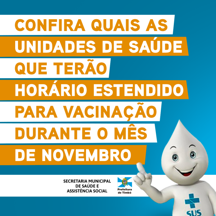 Como forma de contemplar ainda mais a população, durante todo o mês de novembro algumas Unidades de Saúde do município terão horário estendido em suas salas de vacina.
