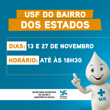 - 13 e 27 de novembro – até às 18h30 – USF do Bairro dos Estados