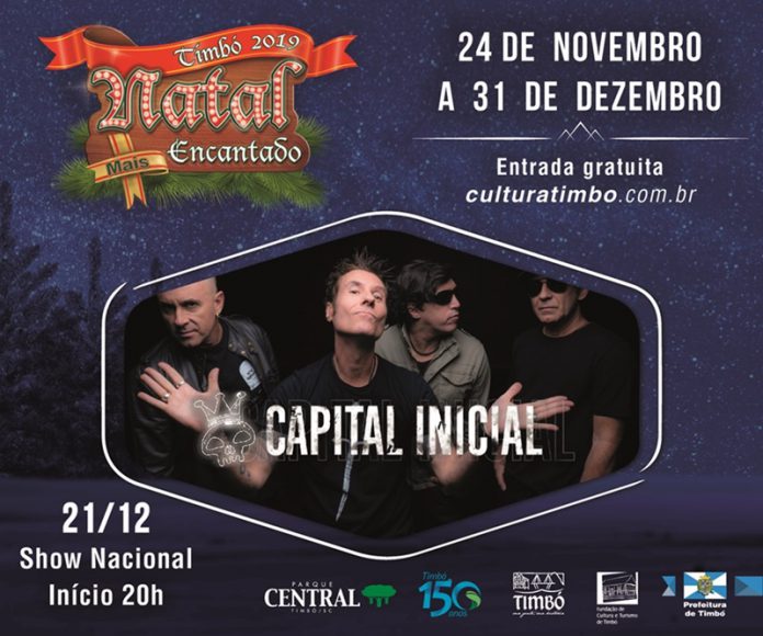 É sábado!! Todos os caminhos levam para o Parque Central de Timbó para mais uma grande atração do Natal Mais Encantado 2019: o show nacional gratuito com Capital Inicial. A programação da noite de 21 de dezembro inicia às 20 horas com as bandas Deslok, seguida pela Lord Herby, que já vão dar o esquenta no público presente.