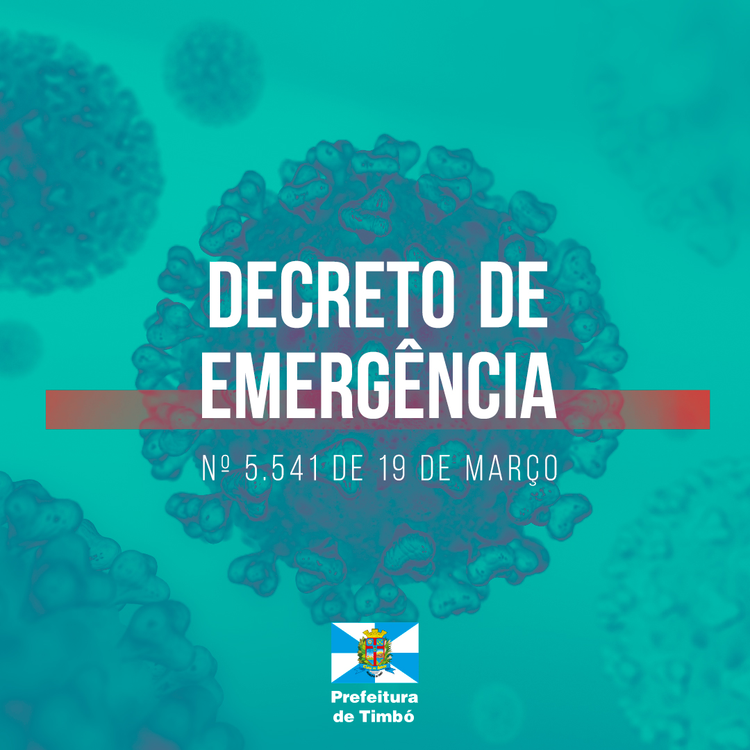 Foi assinado na tarde de hoje, dia 19 de março, o Decreto de Emergência Nº 5.541, que adota novas medidas de prevenção e combate ao Coronavírus (Covid-19) na cidade de Timbó.
