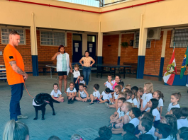 Cão da Defesa Civil de Timbó visita escolas da cidade