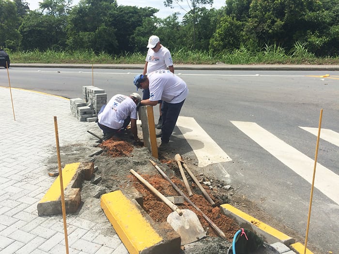 Nesta quarta-feira, dia 25, o Departamento Municipal de Trânsito está realizando o rebaixamento da guia na Rua Nicarágua com a Rua Japão, o que garante a acessibilidade para calçada e faixa de pedestre. Nos próximos dias, o Demutran também deverá concluir a sinalização horizontal e vertical do novo Binário, finalizando a obra.