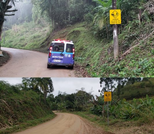 Demutran Timbó instala placas de sinalização para atenção com ciclistas