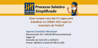 Censo 2022 do IBGE tem inscrições abertas para vagas em Timbó