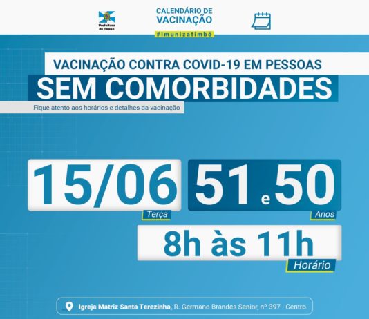 Timbó vacina na quinta-feira contra Covid-19 pessoas a partir dos 18...