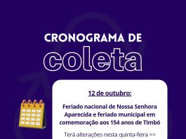Não haverá coleta de resíduos em Timbó nesta quarta-feira, 15 de...