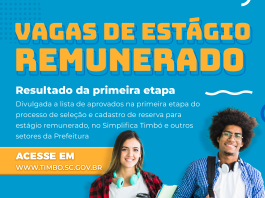 Confira a lista de aprovados na primeira etapa do processo de seleção para estágio remunerado na Prefeitura de Timbó