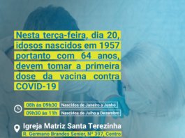 Primeira dose da vacina contra a Covid-19 para idosos com 64 anos será aplicada nesta-terça-feira, 20 de abril