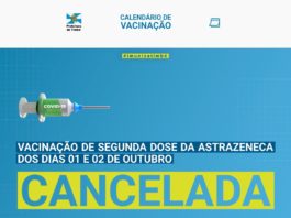 Vacinação de segunda dose da Astrazeneca dos dias 01 e 02 de outubro é cancelada