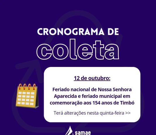 Não haverá coleta de resíduos em Timbó nesta quinta-feira, 12 de outubro