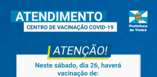 Timbó vacina na terça-feira contra Covid-19 pessoas a partir dos 22...