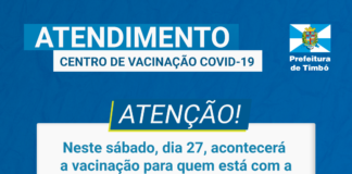 Timbó vacina contra Covid-19 pessoas a partir dos 39 anos e...
