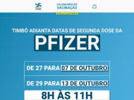 Timbó adianta datas de segunda dose da vacina Pfizer
