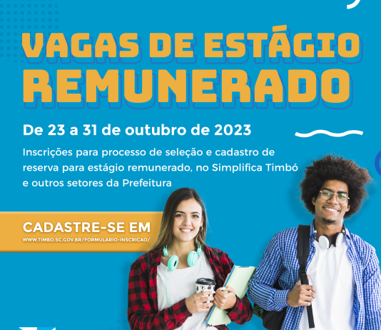 Inscrições para vagas de estágio remunerado na Prefeitura de Timbó encerram nesta terça-feira