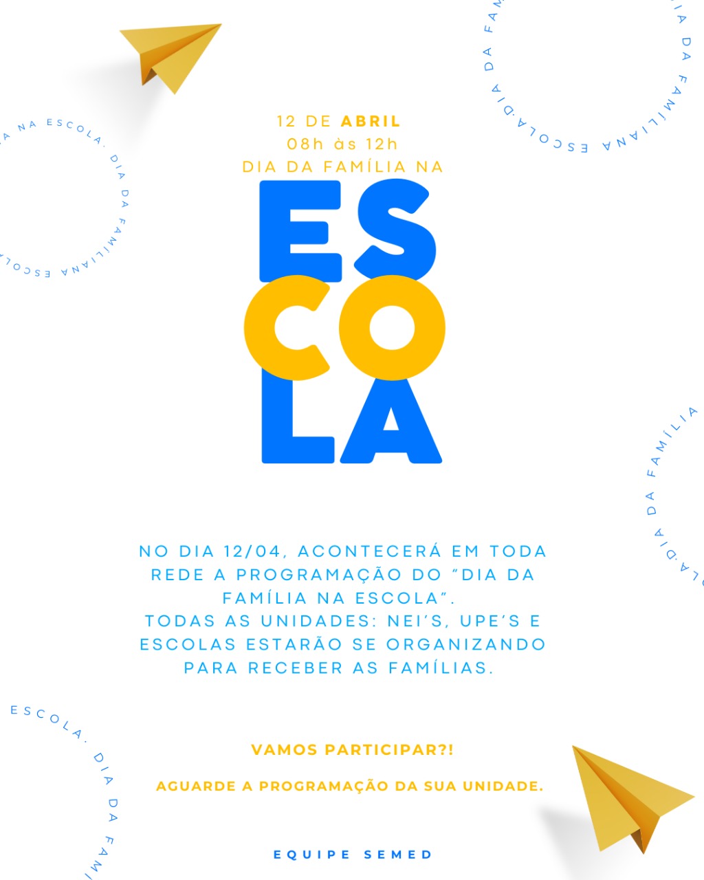 A Secretaria Municipal de Educação convida todas as famílias a participarem desse momento especial. Para mais informações sobre os horários e as atividades, basta entrar em contato com a direção da unidade escolar do seu filho. Esperamos por vocês neste sábado!