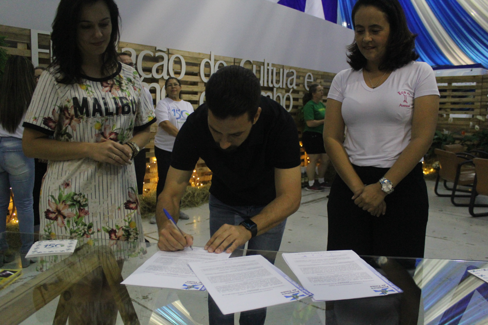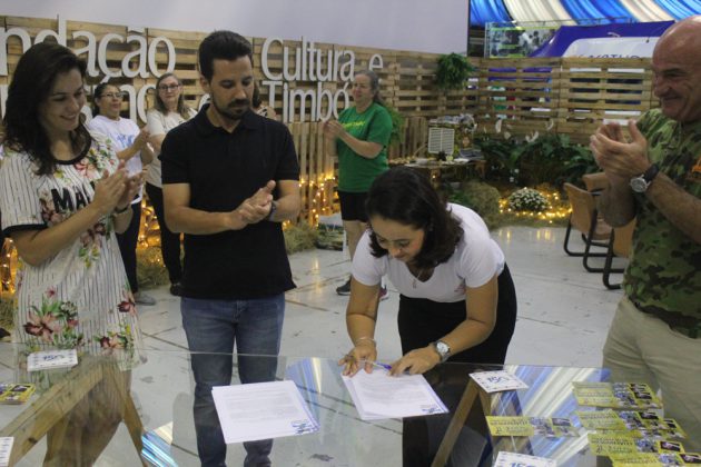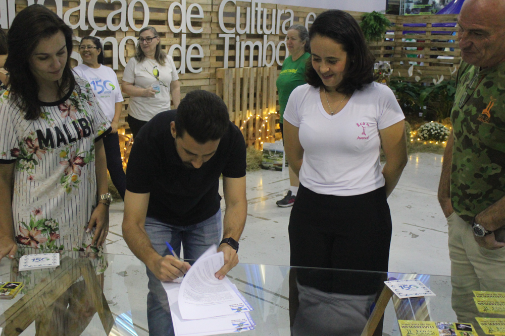 Durante o ato de assinatura, a gestora de Turismo de Timbó, Cíntia Mara Panini, esteve visivelmente emocionada pois, também vê nessa parceria um importante incremento para o turismo municipal.