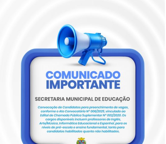 Chamamento público para Secretaria Municipal de Educação Ato Convocatório Nº 004/2025